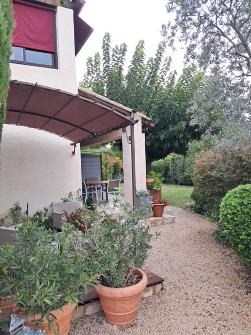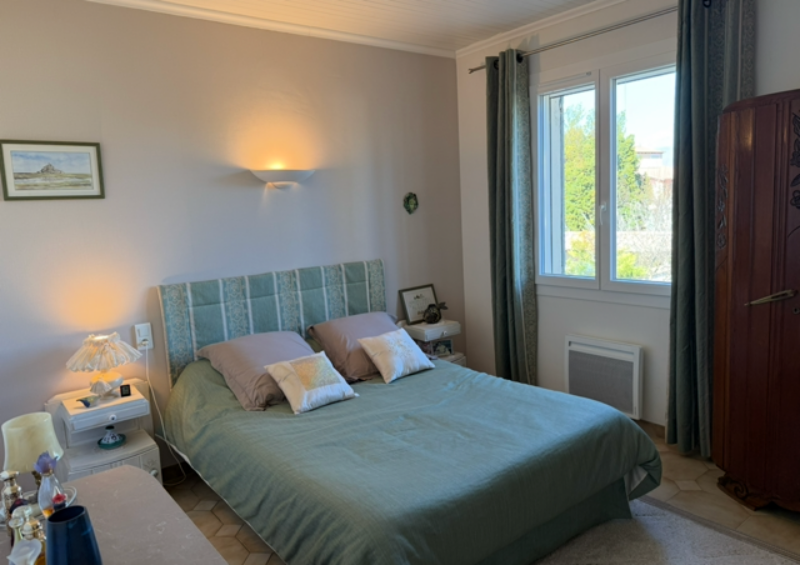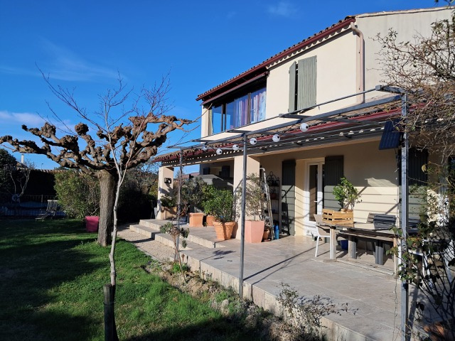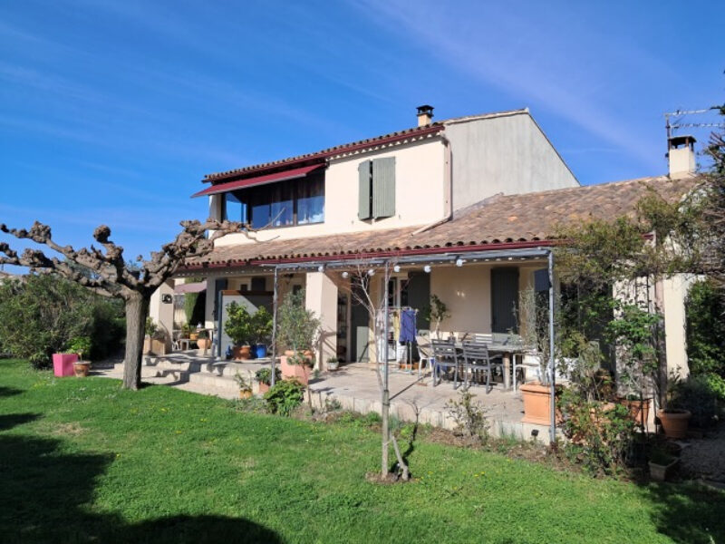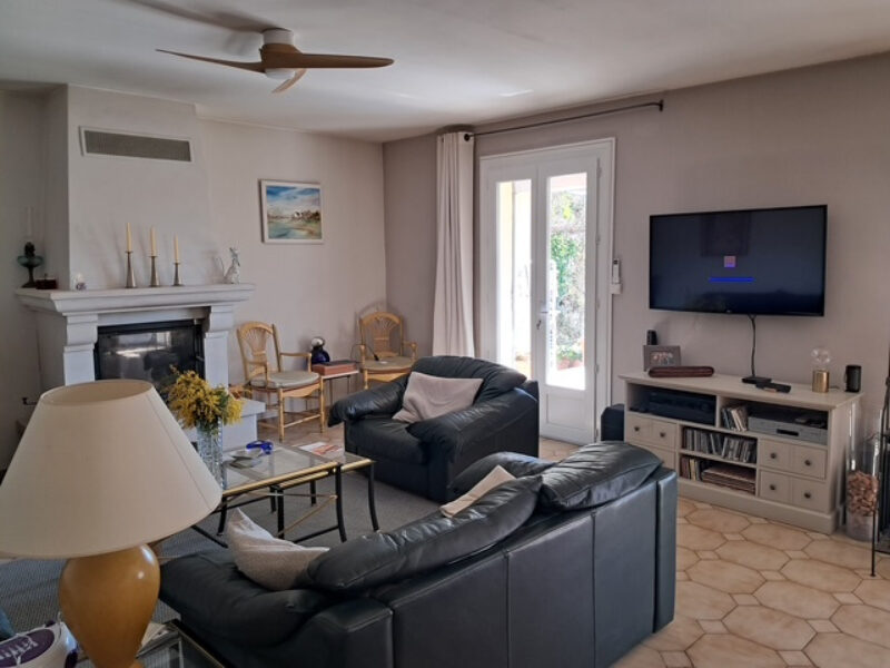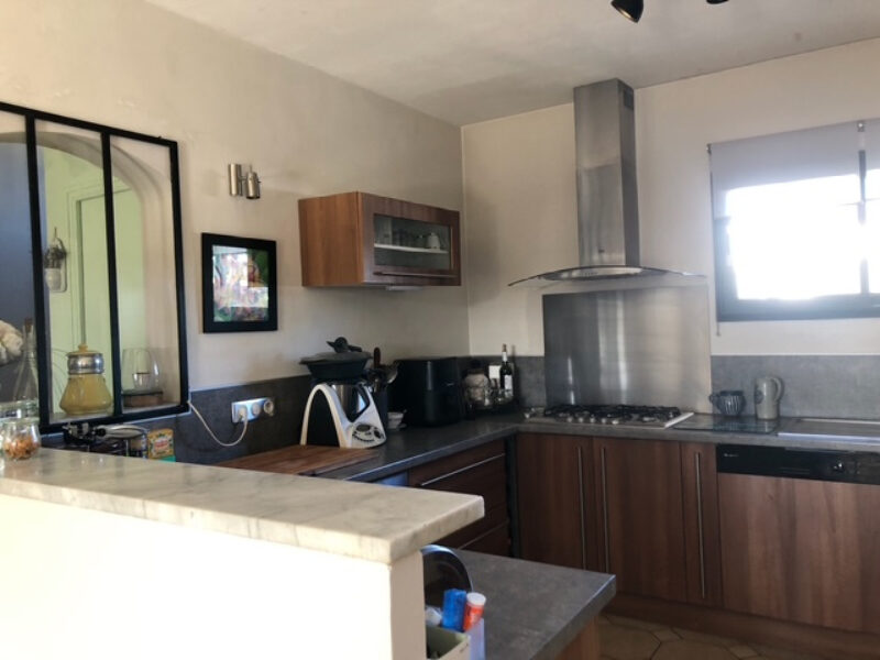 Dans la partie principale, au rdc: hall d’entrée, vaste salon-séjour donnant sur la terrasse avec cuisine ouverte et équipée, cellier , wc et à l’étage: 3 chambres, une salle d’eau, un wc , et un bureau .