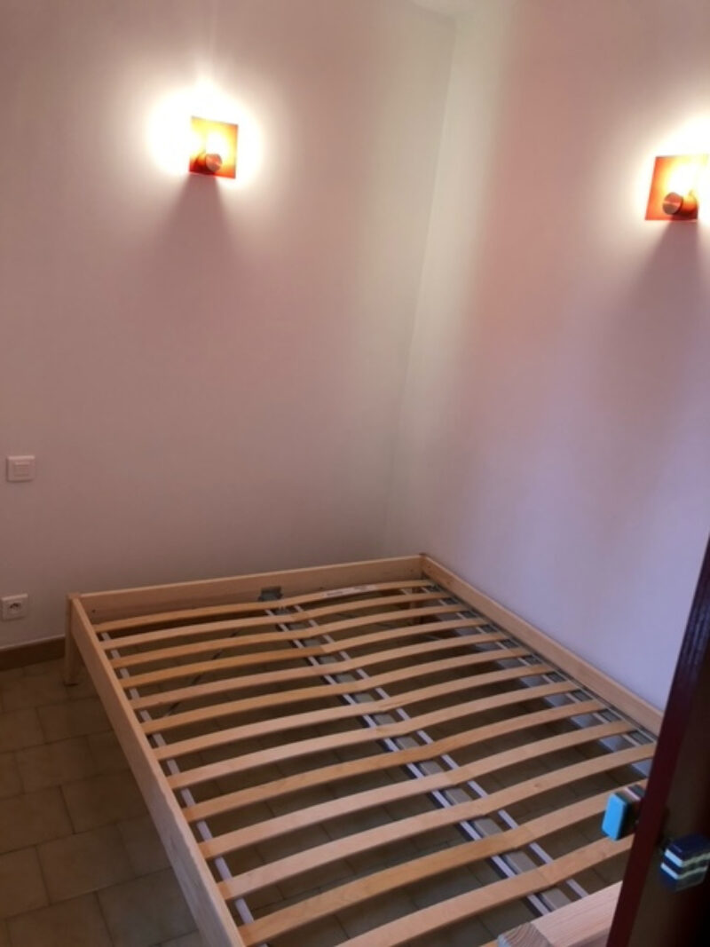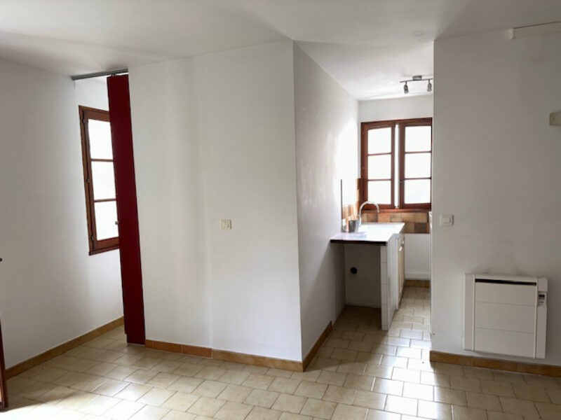 Tout l’espace est bien agencé avec une kitchenette en partie équipée , un coin nuit fermé et une salle de bains wc.