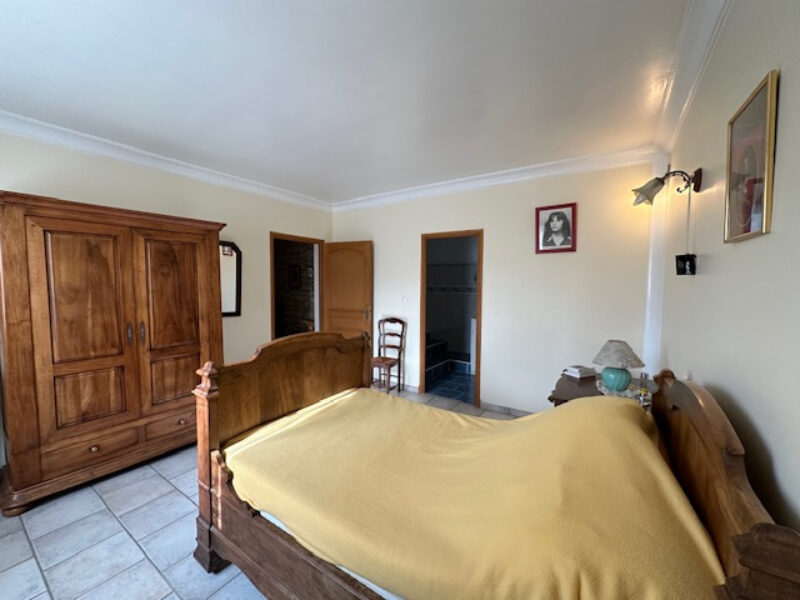 Vous apprécierez le volume de la grande pièce à vivre de plus de 50m2 avec de hauts plafonds,la grande cuisine et son cellier et le coin nuit bien séparé avec 2 chambres dont une avec salle de bains, et une salle d’eau .