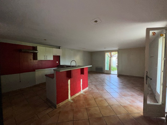 L’entrée se fait dans la pièce à vivre avec cuisine ouverte, et à l’étage vous profitez de 2 chambres , une salle de bains et un wc.