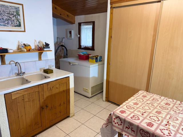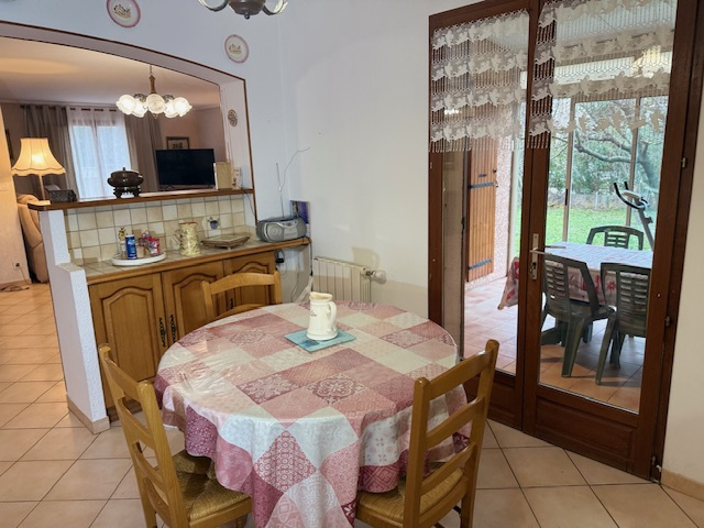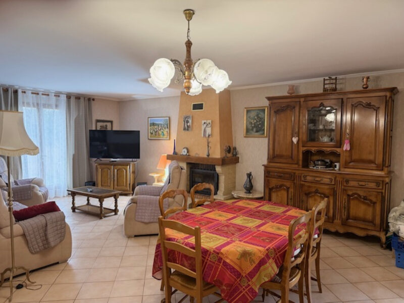 Nous rentrons dans une grande pièce à vivre avec cuisine ouverte et équipée,cellier et buanderie et dans le coin nuit : 3 chambres ,salle de bains complète et wc.